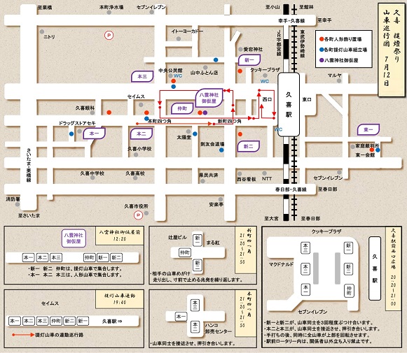 駅前広場内の車道・駅前広場に山車が進入する入り口(さいたまりそな銀行前)は、時間によって関係者以外立ち入り禁止となります。