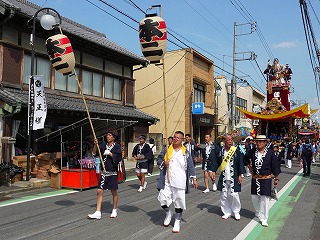 山車が運行する際には必ず「高張提灯」が先導しています。山車が交差点で右に曲がるのか、左に曲がるのか、それとも直進するかは、高張提灯が進んだ方向を確認すると予測できます。